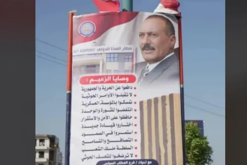 رفعت السلطات المحلية في محافظة مأرب لافتات كبيرة تحمل صور الرئيس الراحل علي عبد الله صالح، إلى جانب الوصايا العشر التي أعلنها في خطابه الأخير خلال انتفاضة ديسمبر 2017 لاستعادة النظام الجمهوري في اليمن.