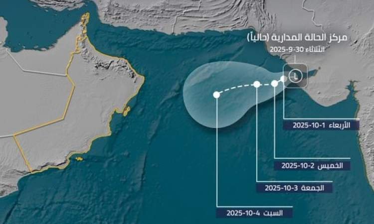 لافتا الى انه حاليا لا يوجد اي توقعات بالتاثير على اليمن وسلطنة عمان حتى 2 اكتوبر 2025 مع الاشارة الى استمرار تدفق الكتل الرطبة وتشكل السحب على سلطنة عمان ولا تاثير مباشر بعد ذلك تحدث البيانات والتوقعات بناء على المستجدات والمتغيرات خصوصا مع عدم الثبات للمعطيات الحالية بشان المسار المتوقع.