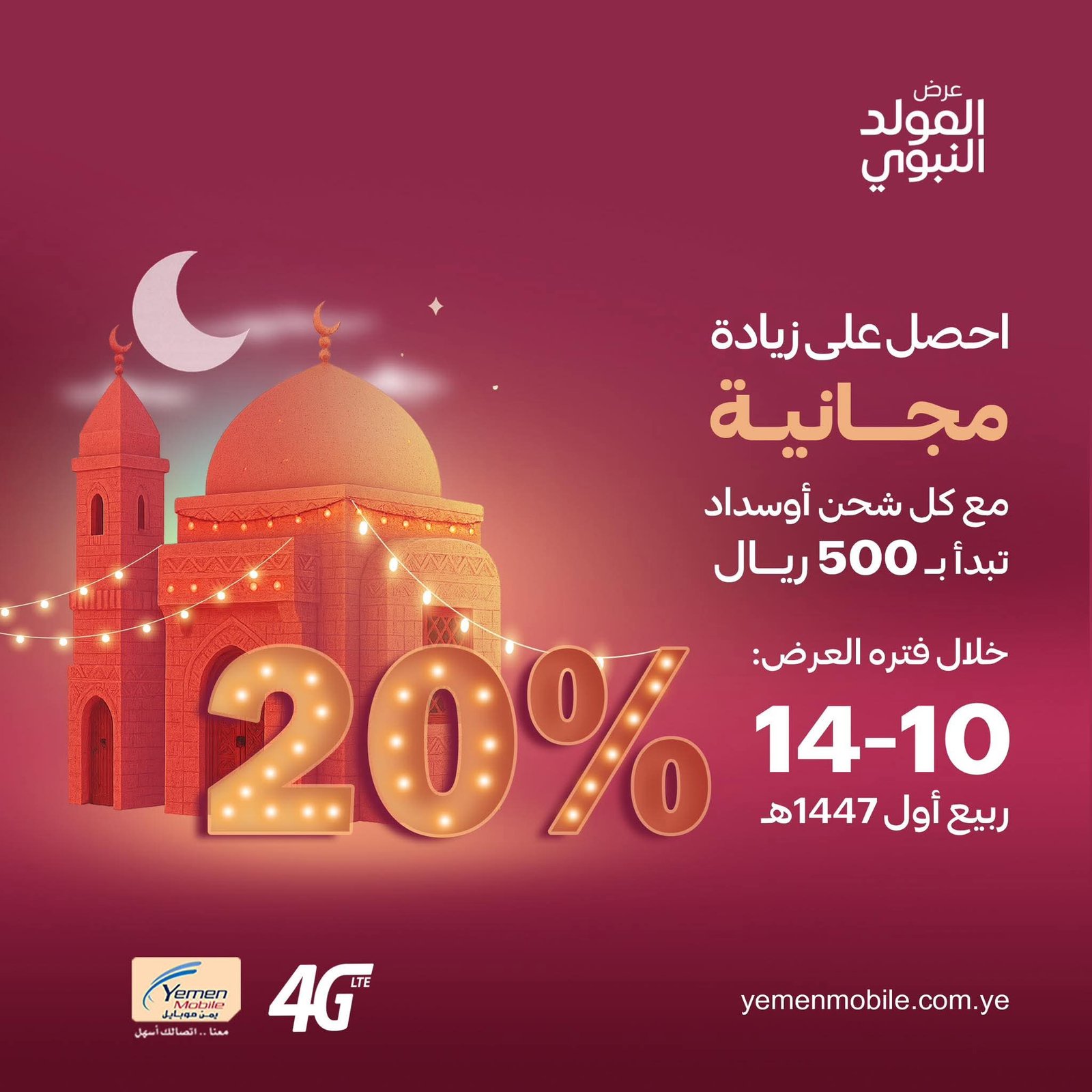 شؤون محلية عرض خاص من يمن موبايل: احتفالاً بالمولد النبوي الشريف MO سبتمبر 3, 2025سبتمبر 3, 2025147 بمناسبة ذكرى المولد النبوي الشريف 1447 هـ، أطلقنا عرضاً خاصاً ...قراءة المزيد