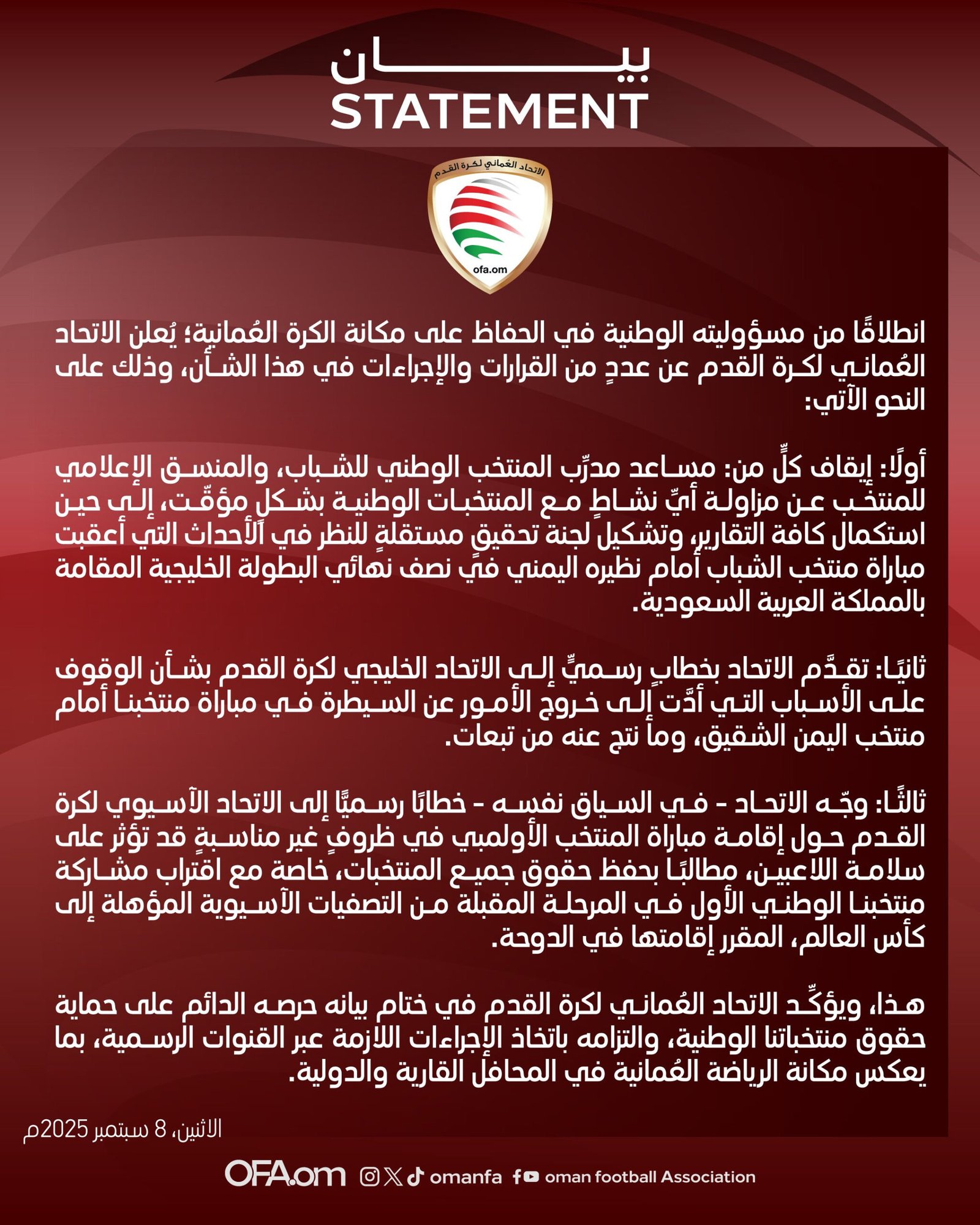 ...قراءة المزيداصدر اإتحاد العماني لكرة القدم قرار ايقاف مدرب منتخب عمان